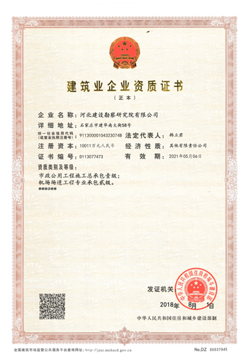 公司獲得機場場道工程專業承包貳級資質證書