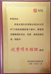2018年12月14日連云港石化有限公司副總經(jīng)理孫剛特向我公司李友東經(jīng)理親自頒發(fā)“攻堅(jiān)克難鐵軍”稱號獎牌,向項(xiàng)目經(jīng)理李亮同志頒發(fā)“優(yōu)秀項(xiàng)目經(jīng)理”榮譽(yù)稱號,并致感謝信,對我公司表現(xiàn)出來無私奉獻(xiàn)、頑強(qiáng)拼搏的精神給予了高度肯定。河北建勘“鐵軍”風(fēng)采、勇創(chuàng)第一的精神,獲得了業(yè)主及各方一致贊譽(yù),并衷心希望我們雙方在今后的工作中精誠合作,共鑄輝煌!