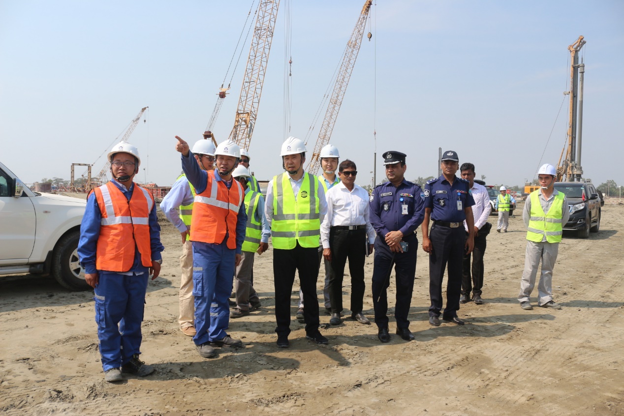 2019年2月23日,駐孟加拉國特命全權(quán)大使張佐蒞臨我公司孟加拉吉大港艾薩拉姆超超臨界燃煤機(jī)組樁基工程施工現(xiàn)場進(jìn)行視察。公司駐孟加拉辦事處主任李福來、項目經(jīng)理丁偉和EPC總包單位山東電建三公司部分員工以及吉大港市警察局最高警司全程陪同。