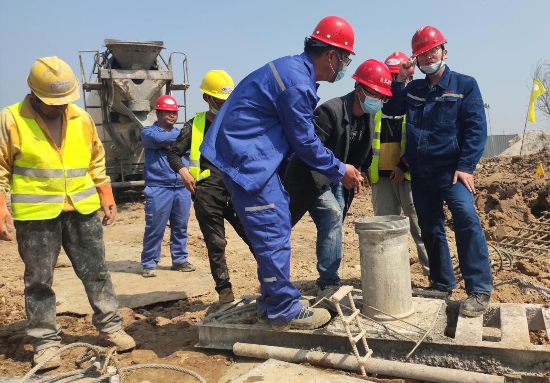 本工程自2022年2月17日開工,至2022年5月10日完成全部合同內容。本工程的工程樁負孔深度和氣化框架的樁頂標高均在-5.3m,尿素裝置的樁頂標高為-3.0m和-4.0m兩種,施工時樁頂混凝土超灌和樁頭質量控制是本項目的一個重點。為保證灌注樁施工過程中樁頂超灌和樁頭質量,項目部現場制作了撈渣器,嚴格控制超灌高度。經開挖檢驗,現場樁頭未存在質量問題。